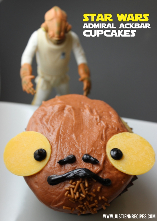 My portfolio of Star Wars food is ever expanding. In cupcake form I’ve created Princess Leia cupcakes, Vegan Jawas, even Stormtroopers SMOREStroopers cupcakes but one character I’ve yet to tackle is Admiral Ackbar!