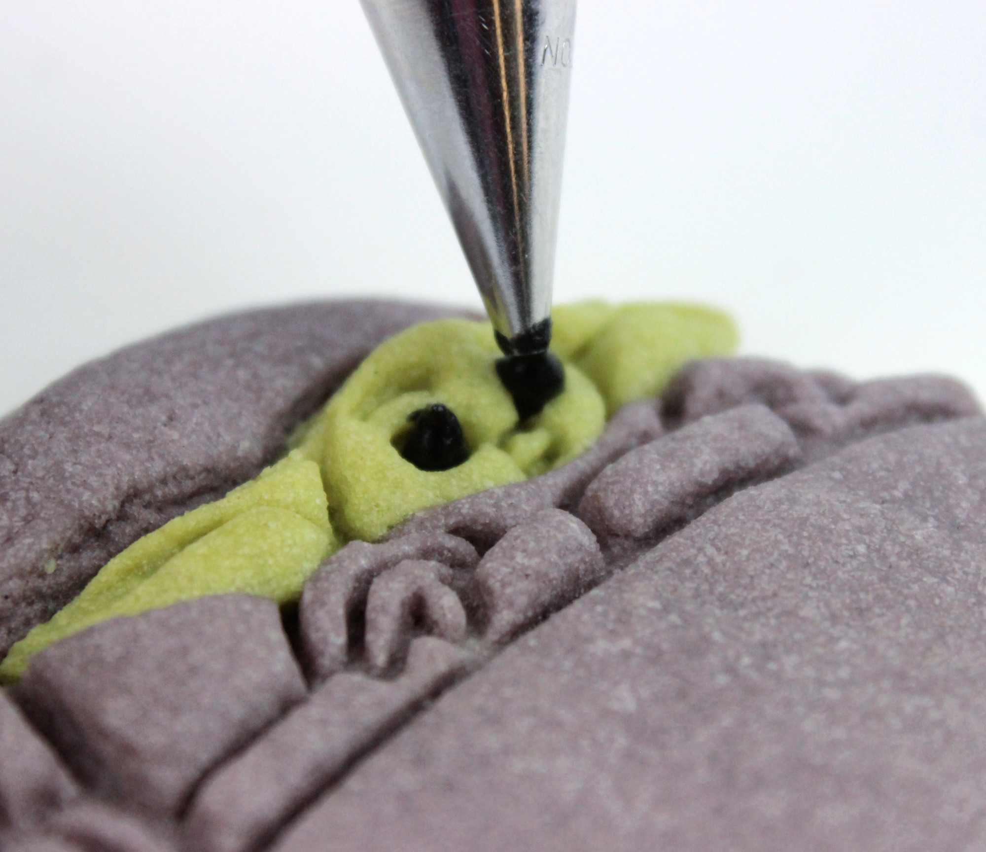 I changed him out with matcha dough, and used pink Starburst for his little ears. Now this cute l’il Star Wars cookie is ready to roll, just in time to settle in for The Mandalorian premiere!