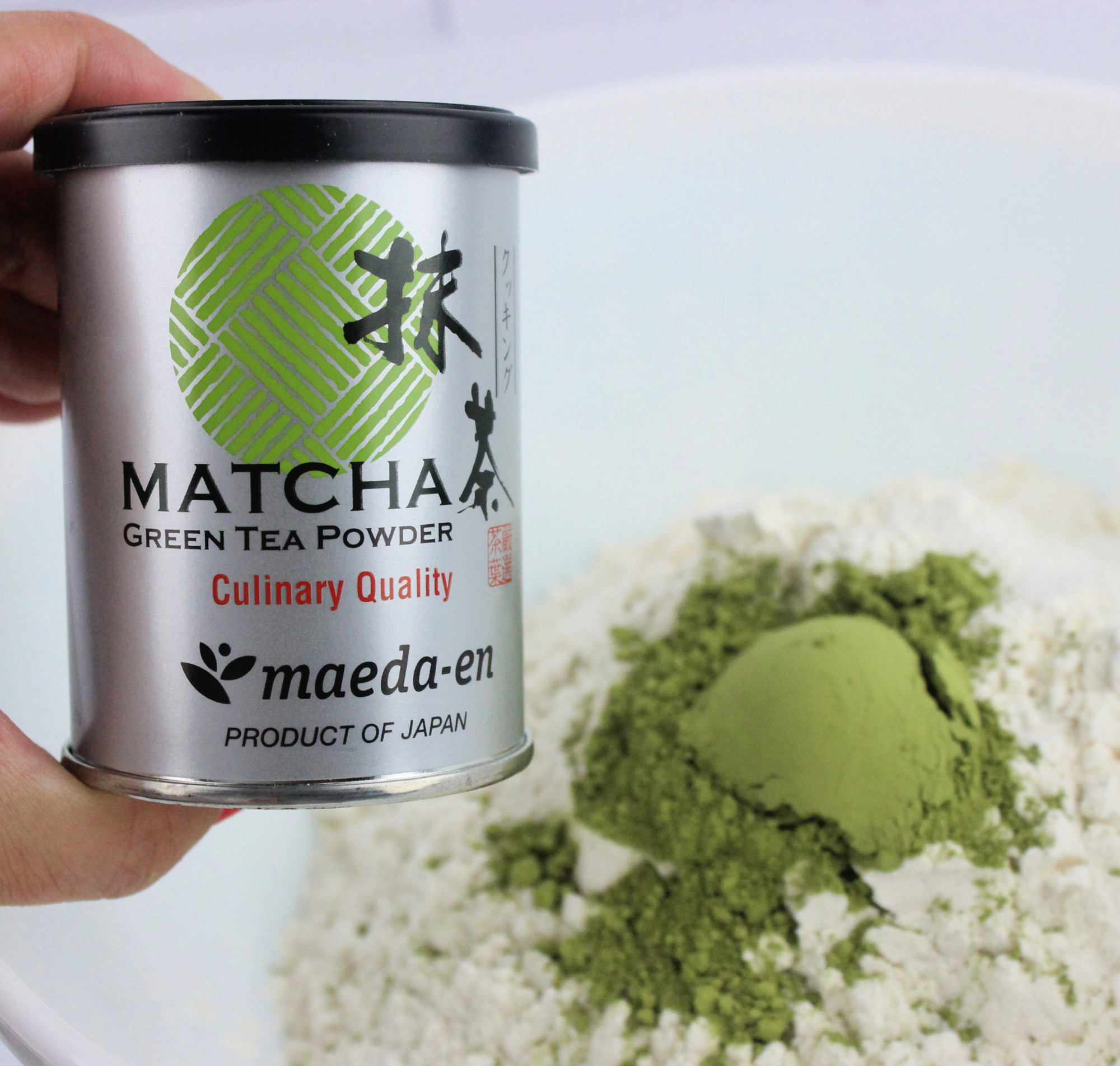 Step 6: In a medium bowl whisk together the flour, matcha, baking powder, and salt. Set aside.