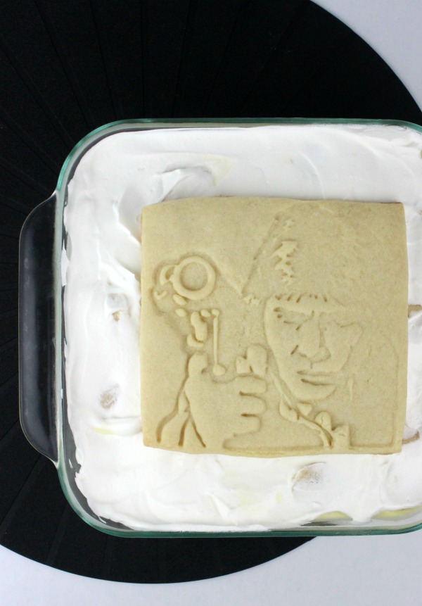 I will say the impression on this cutter is stunning—so much detail—which is why they couldn’t make it smaller. I tried to make the most of the situation and thought, what is the best use for a giant cookie? Banana pudding with a Star Wars twist, just in time for Solo: A Star Wars Story! Rather than lining the dish with small cookies, I just used the giant Han one and it was an instant success!