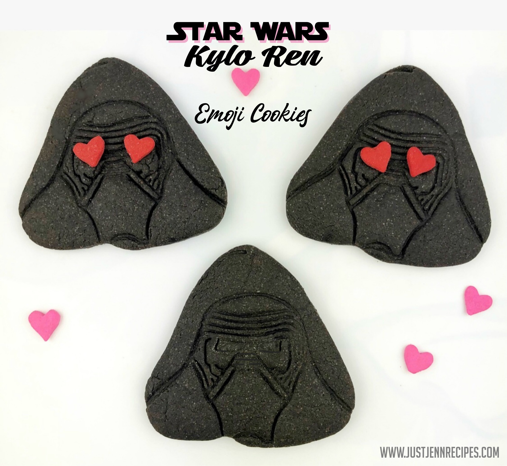 Since this fundraiser benefits kids, I always try and incorporate Star Wars into my recipe. This year I created Kylo Ren cookies with a fun twist, heart eyes to make a Kylo Ren edible emoji. He’s never as happy as when he’s in cookie form.