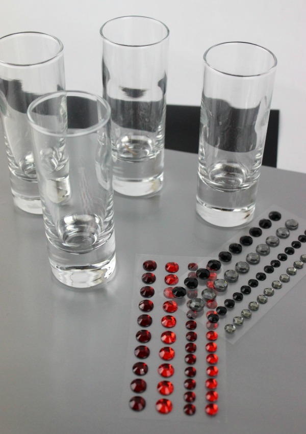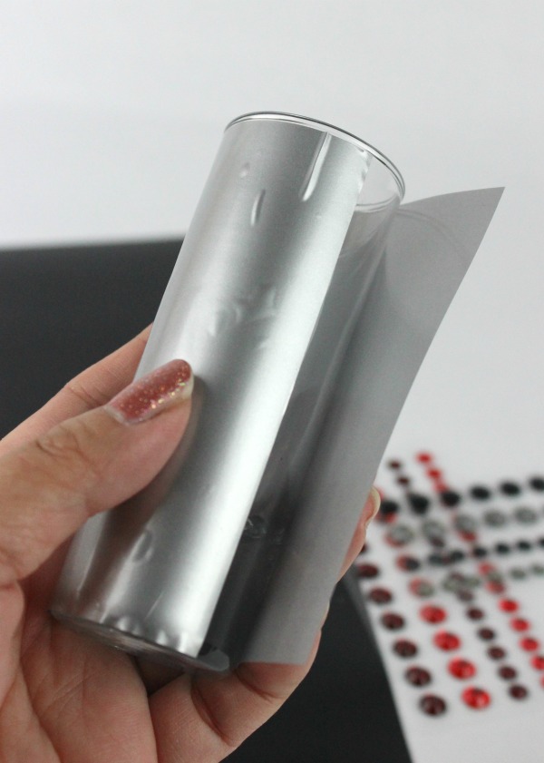 Wrap the gray piece around the entire shot glass, carefully pushing out the air bubbles as you stick the piece down.