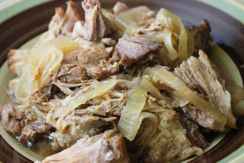 Set the crock pot on low for 6-8 until the pork is cooked through and falls to pieces.