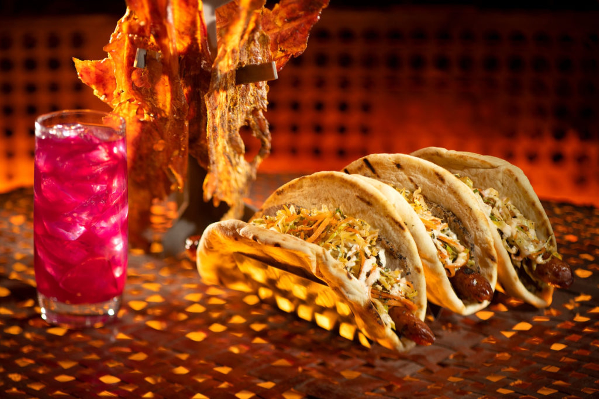 BBQ pork, grilled sausage, and slaw, all wrapped up in grilled masa.