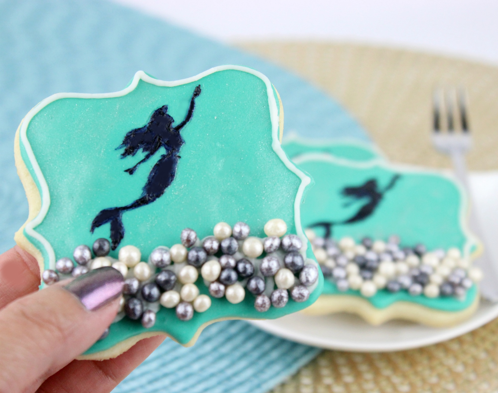The Little Mermaid is a classic and these cookies are a fun way to bring back memories from the iconic movie. Teal fondant, a purple mermaid silhouette, and shiny edible pearls all make for a beautiful treat to represent a memorable film.