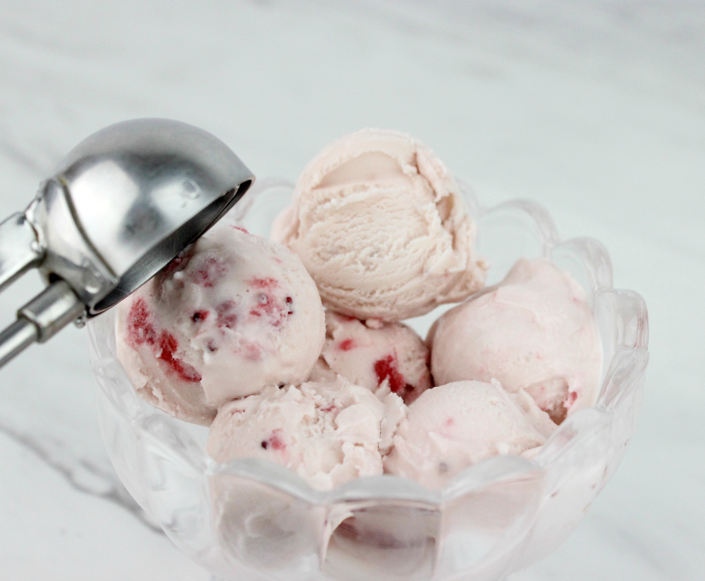 Step 3: Scoop small balls of strawberry ice cream around the outer edge of a serving bowl.
