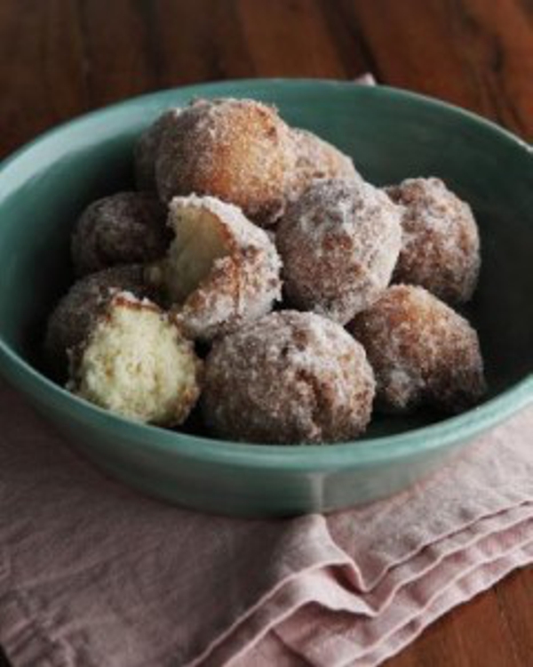 Once the dough floats, fry for a few minutes on each side until golden brown. Let drain slightly on a wire rack and while the donuts are still hot, roll in the vanilla sugar mixture. Serve immediately.