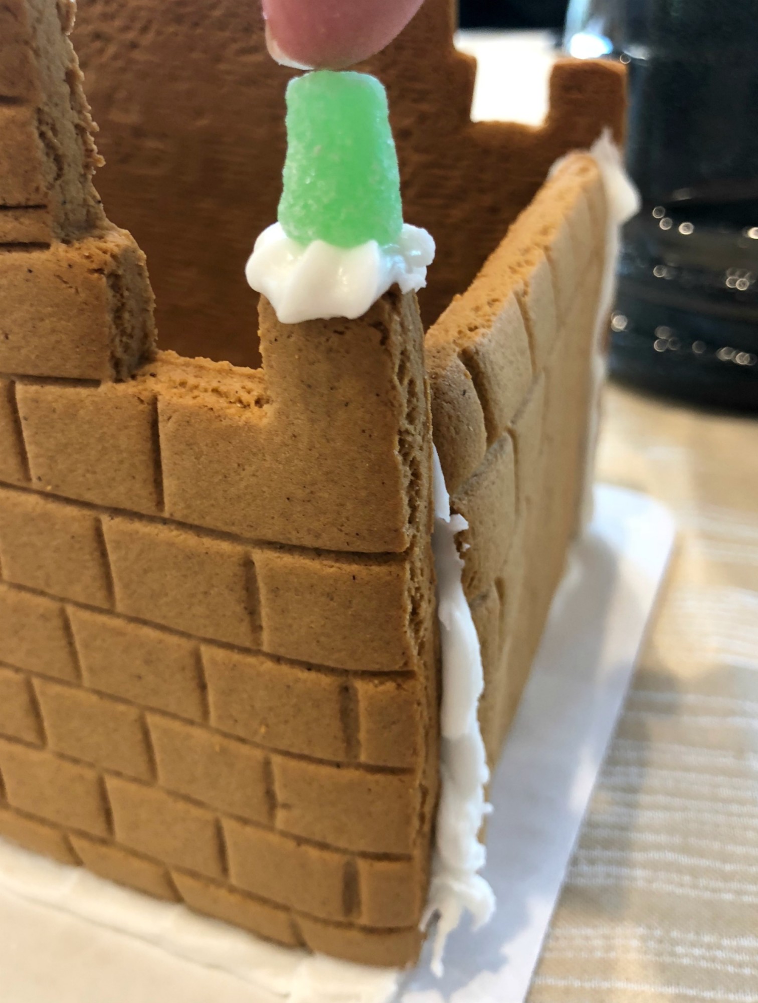 My brother suggested attaching candy stars to straws to make them seem like they were exploding out of the castle. That’s the best part about putting together a gingerbread house, taking input from everyone to make it a fun, family group project.