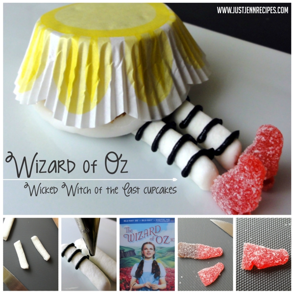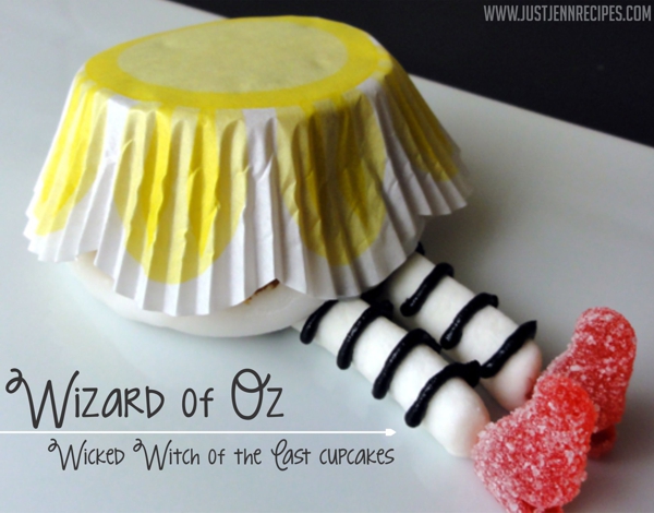To celebrate this beloved movie I made Wicked Witch of the East cupcakes. Instead of a house crushing the witch, I’ve smashed her with a Lemon Yellow Brick Road cupcake! That’s the way I want to go.